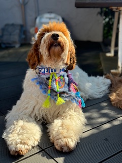 Jeans Halstücher in verschiedenen Farben und mit Klickverschluss und D-Ring als Halsband tragbar.